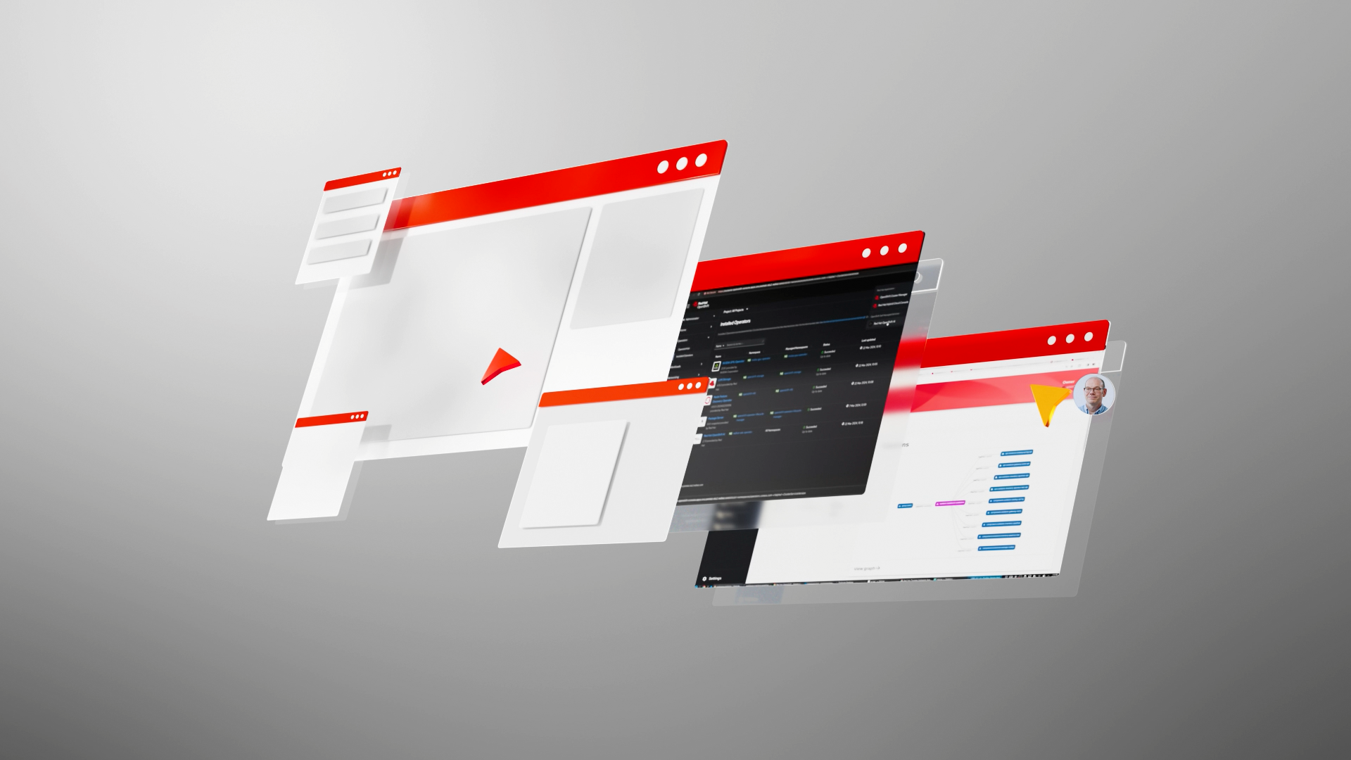 Designed to showcase the order in which a customer may go through the programs, we made sure to bring in an extra layer of human connection in the video. To show how Red Hat’s team and a customer may interact, we see cursors and profile pictures as people work together to build and grow AI centric apps.