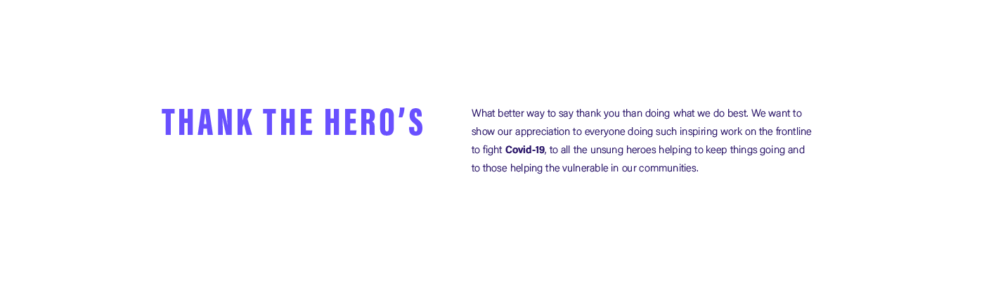 What better way to say thank you and raise some awareness than doing what we do best. We want to show our appreciation to everyone doing such inspiring work on the frontline to fight Covid-19, to all the unsung heroes helping to keep things going and to those helping the vulnerable in our communities.What better way to say thank you and raise some awareness than doing what we do best. We want to show our appreciation to everyone doing such inspiring work on the frontline to fight Covid-19, to all the unsung heroes helping to keep things going and to those helping the vulnerable in our communities.